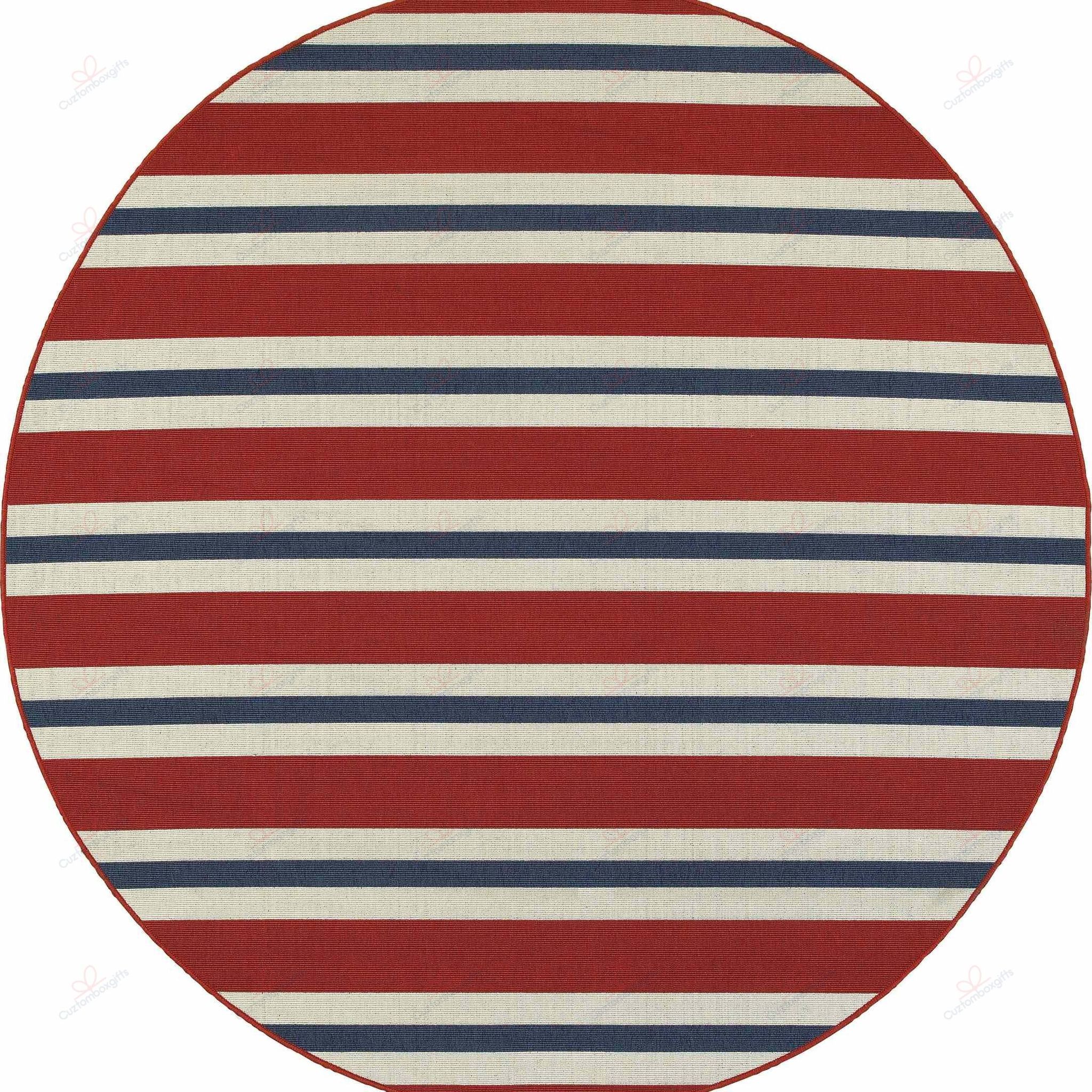 Americana Striped Red And Blue Round Carpet Floor Rug Living Room Bedroom Decor Round Area Rug Carpet
