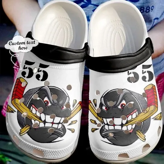 Angry Hockey White Personalize Clog Custom Crocs Clog Number On Sandal Fashion Style Comfortable For Women Men Kid