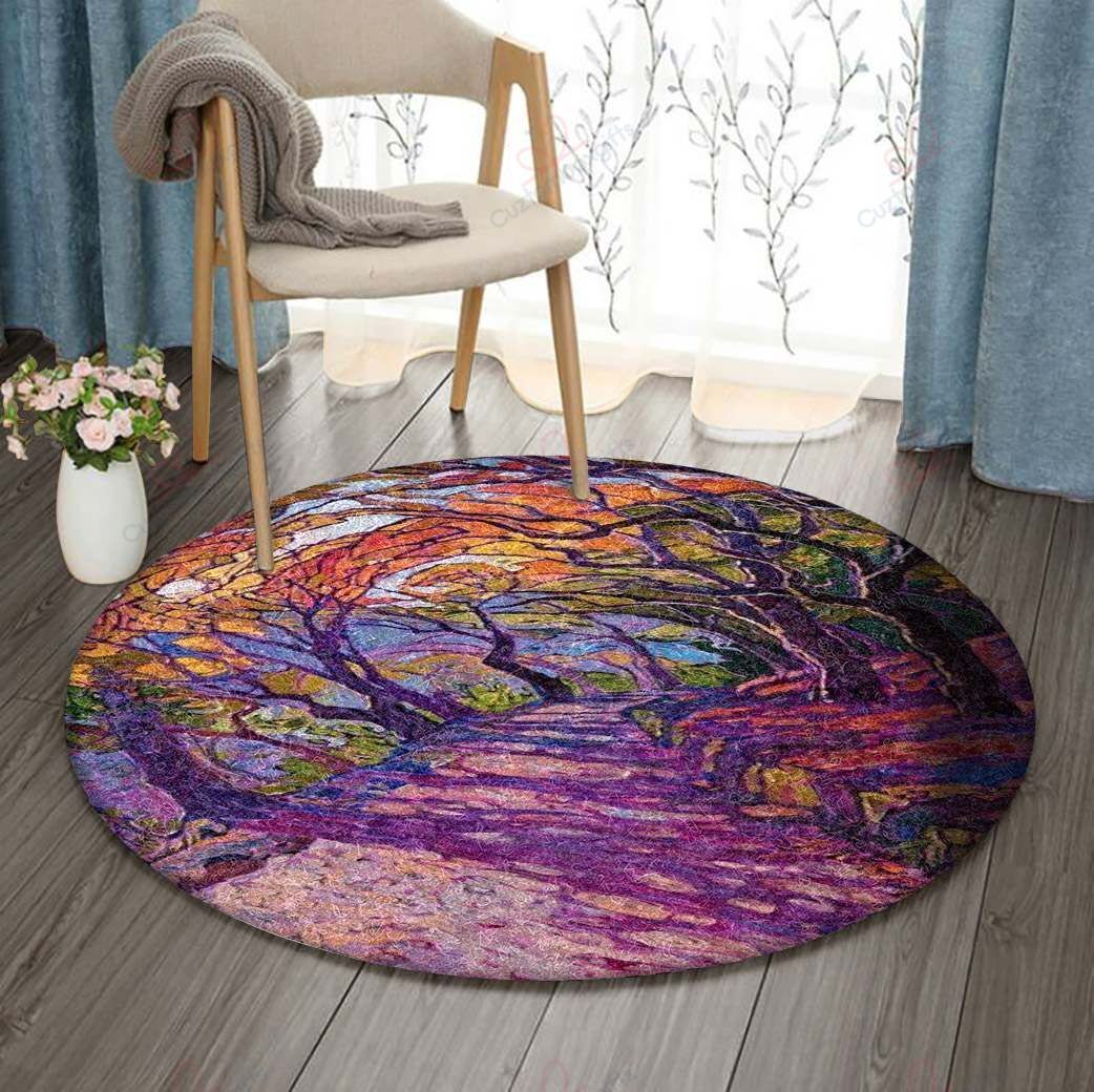 Autumn Forest Round Carpet Floor Rug Living Room Bedroom Decor Round Area Rug Carpet
