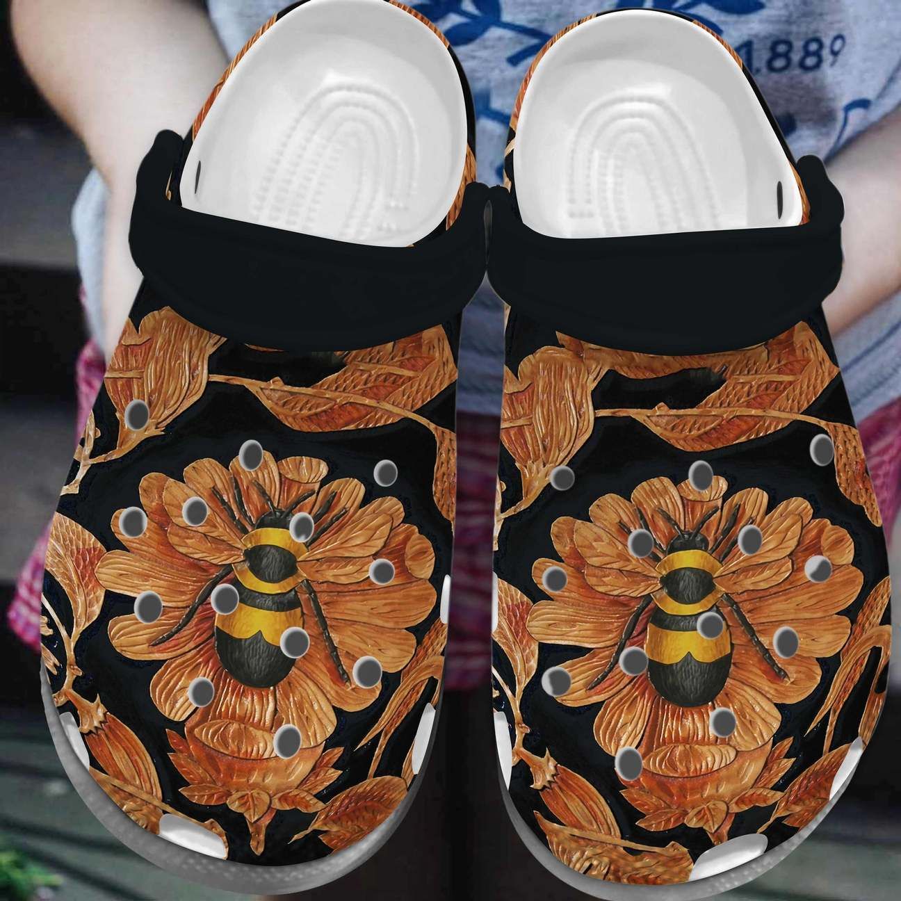 Bee Personalized Clog Custom Crocs Comfortablefashion Style Comfortable For Women Men Kid Print 3D Gold Black Honey Bee