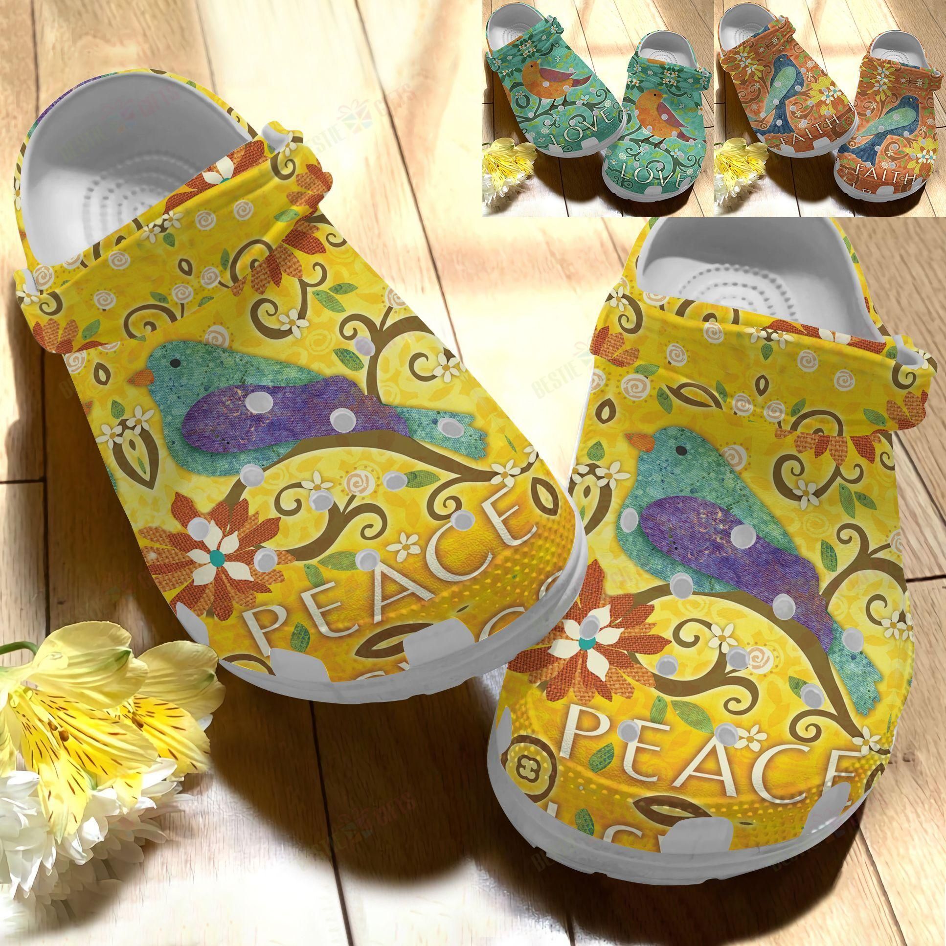 Bird Crocs Clog Classic Clog Whitesole Peace Love Faith Shoes