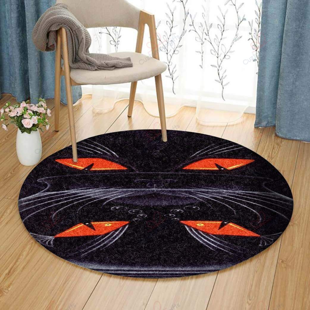 Black Cat And Fish Round Carpet Floor Rug Living Room Bedroom Decor Round Area Rug Carpet
