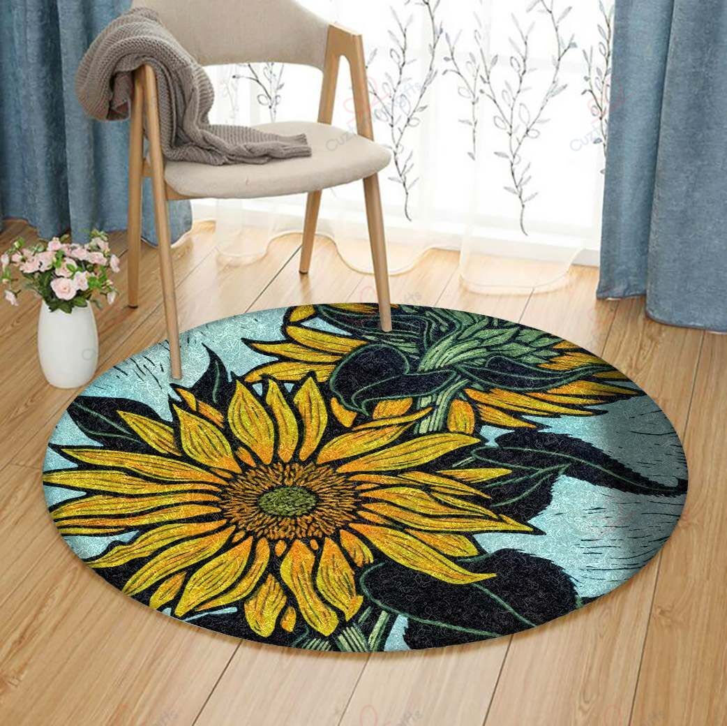 Black Sunflower Round Carpet Floor Rug Living Room Bedroom Decor Round Area Rug Carpet