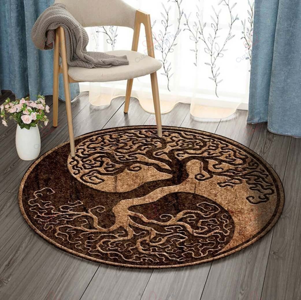 Brown Tree Of Life Round Carpet Floor Rug Living Room Bedroom Decor Round Area Rug Carpet
