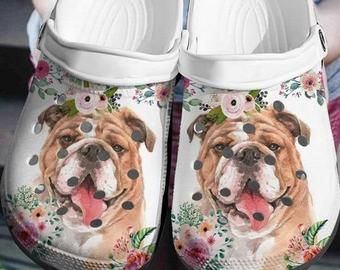 Bulldog Flower Crocs 3D Printed French Bulldog Crocs Crocband Clog Gift For Dog Lover English Bulldog Gift
