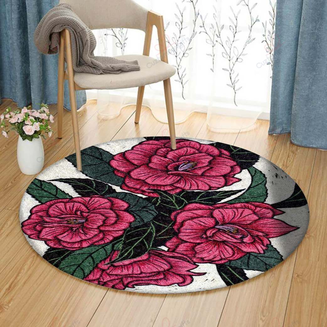Camellia Round Carpet Floor Rug Living Room Bedroom Decor Round Area Rug Carpet