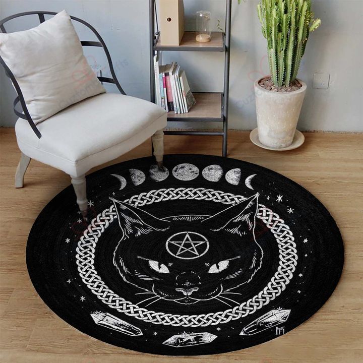 Celtic Black Cat Round Carpet Floor Rug Living Room Bedroom Decor Round Area Rug Carpet