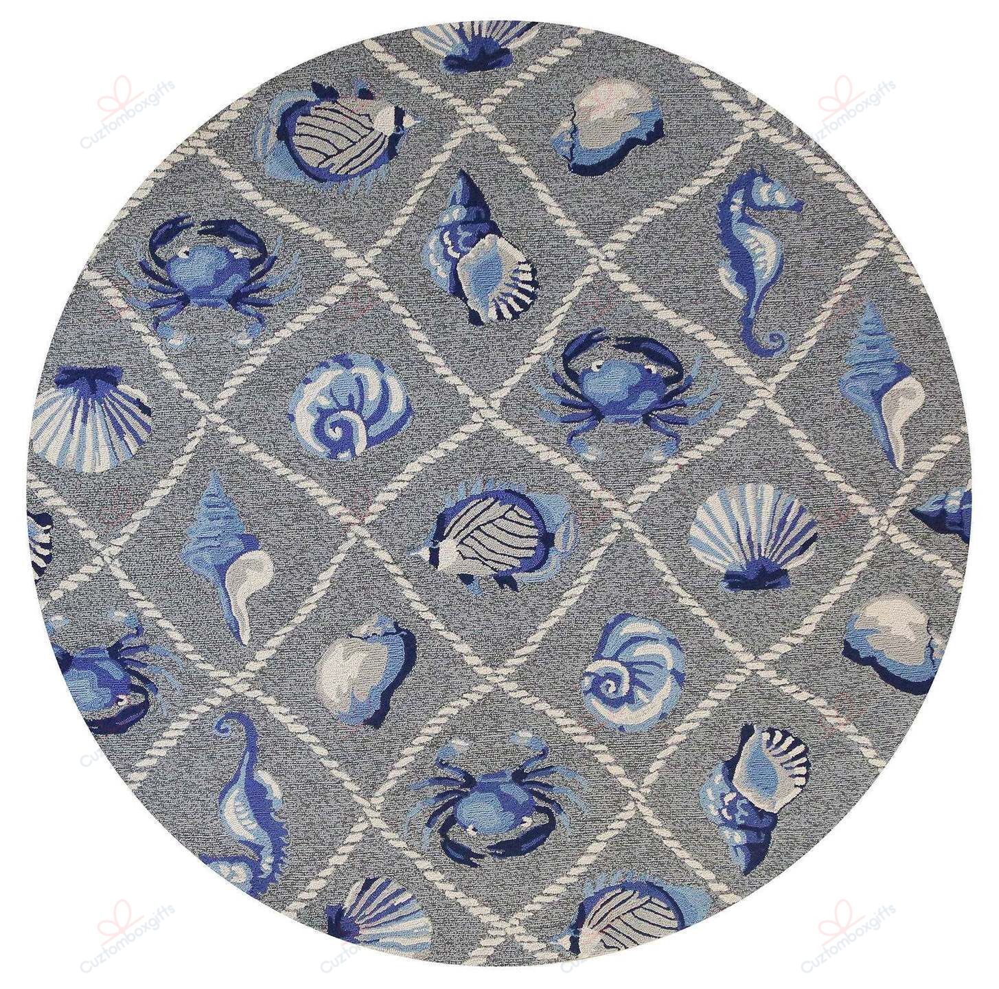 Coastal Living Round Carpet Floor Rug Living Room Bedroom Decor Round Area Rug Carpet