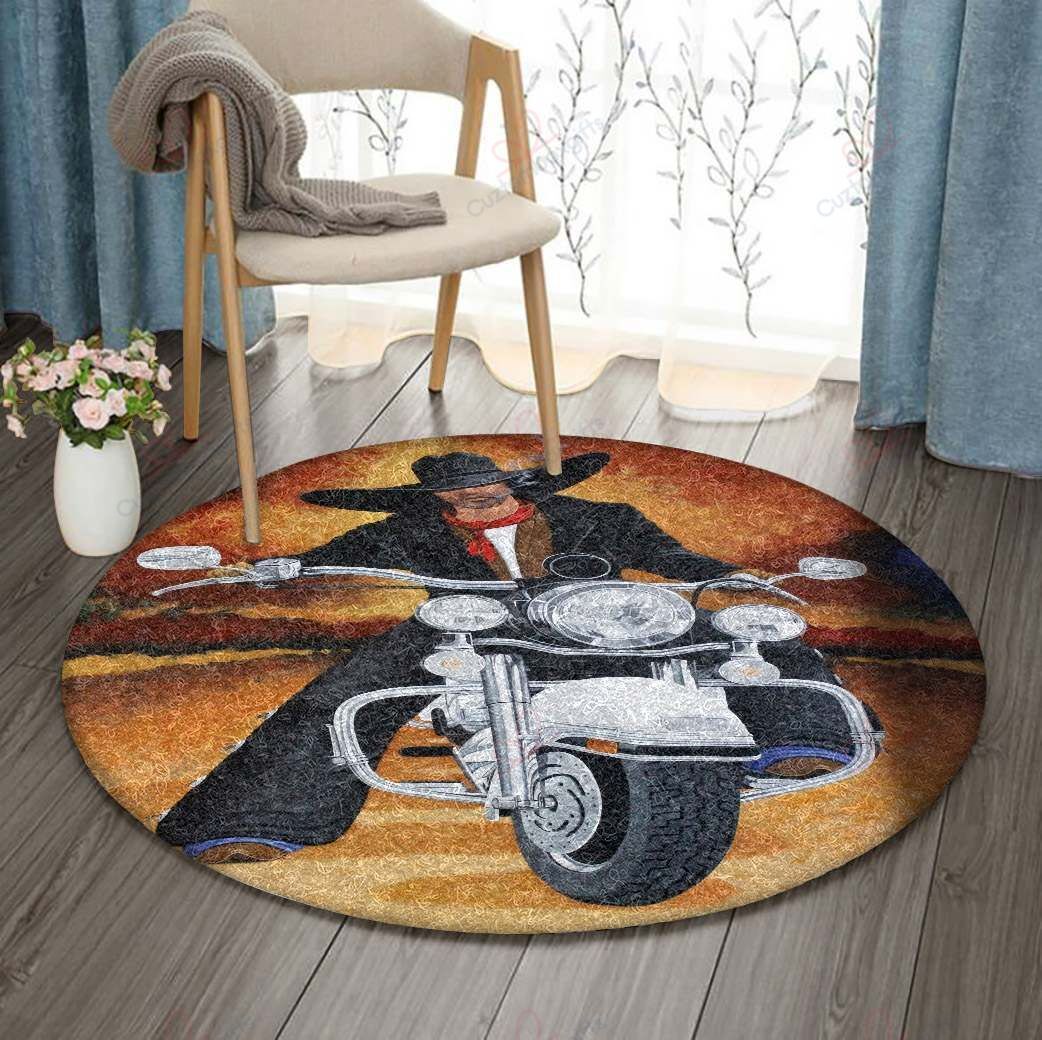 Cowboy Motor Round Carpet Floor Rug Living Room Bedroom Decor Round Area Rug Carpet