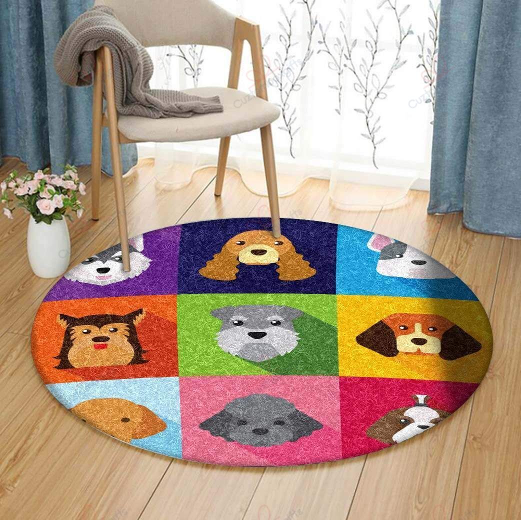 Cute Face Dog Round Carpet Floor Rug Living Room Bedroom Decor Round Area Rug Carpet