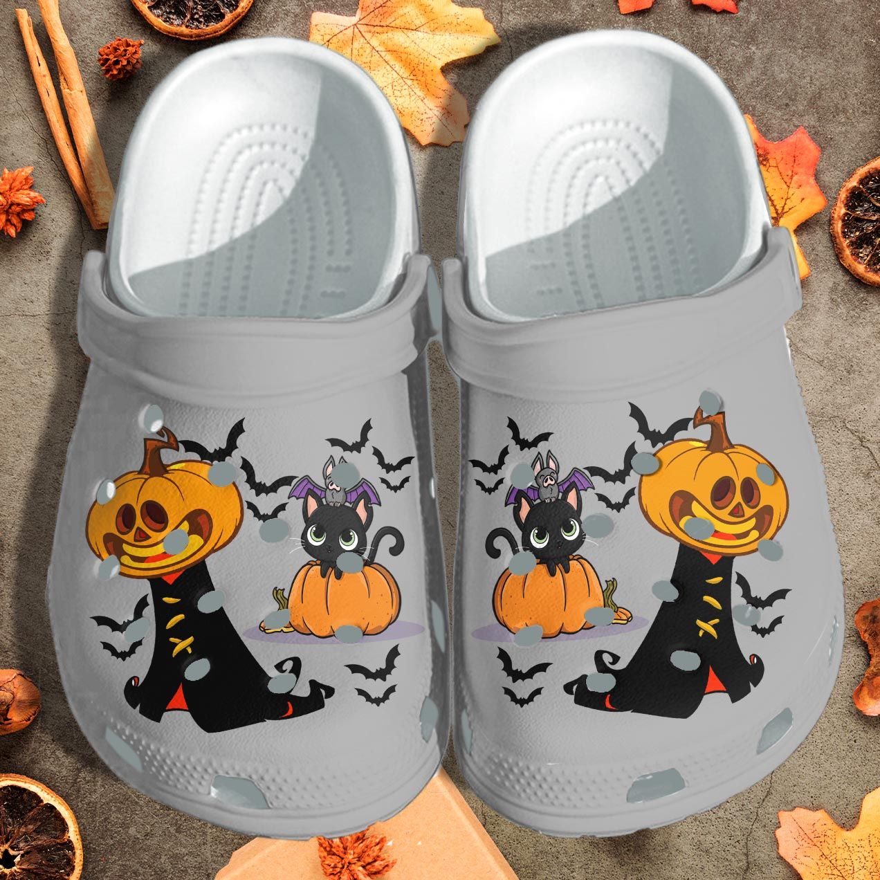 Cute Pumpkin In Ghost Shoes – Cat Bats Halloween Clog Crocs Clog Crocband Clog Birthday Gift For Man Woman