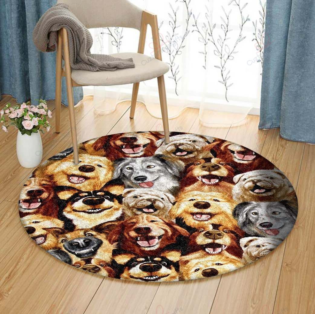 Dogs Smiling Round Carpet Floor Rug Living Room Bedroom Decor Round Area Rug Carpet