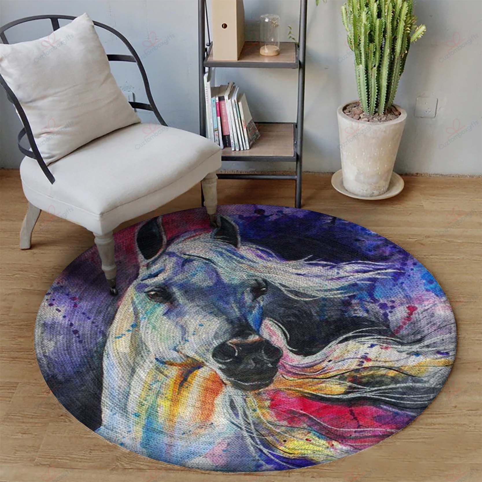 Elegant Horse Round Carpet Floor Rug Living Room Bedroom Decor Round Area Rug Carpet