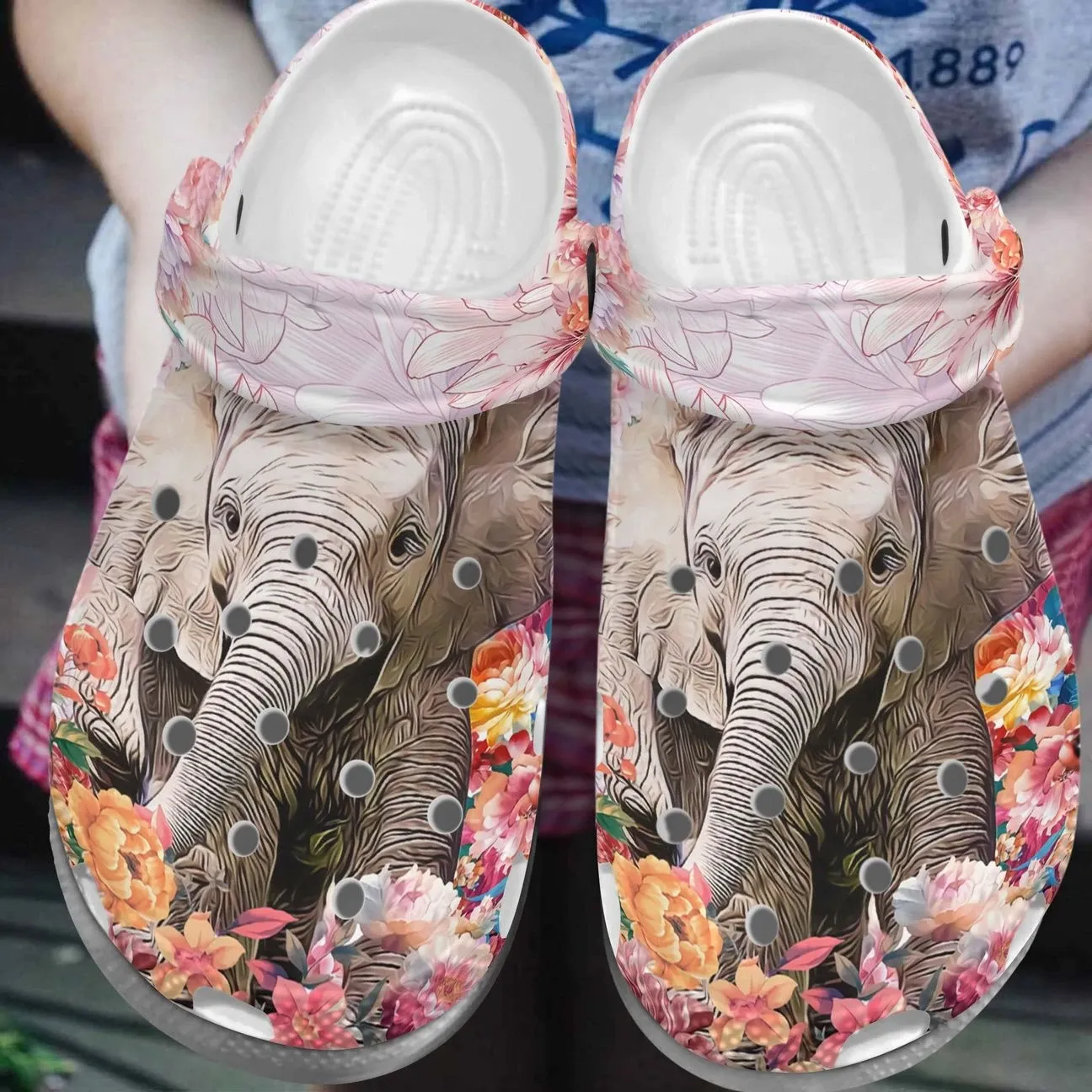 Elephant Personalized Clog Custom Crocs Comfortablefashion Style Comfortable For Women Men Kid Print 3D Flowery