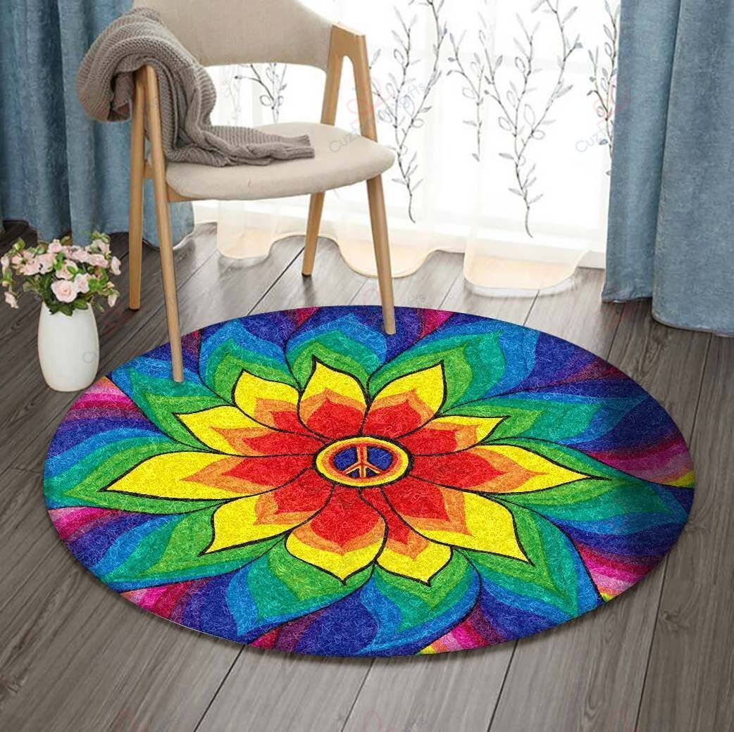Flower Peace Round Carpet Floor Rug Living Room Bedroom Decor Round Area Rug Carpet