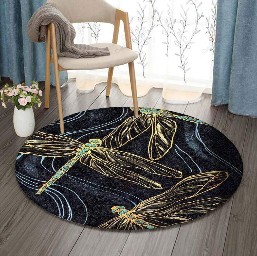 Golden Dragonfly Round Carpet Floor Rug Living Room Bedroom Decor Round Area Rug Carpet