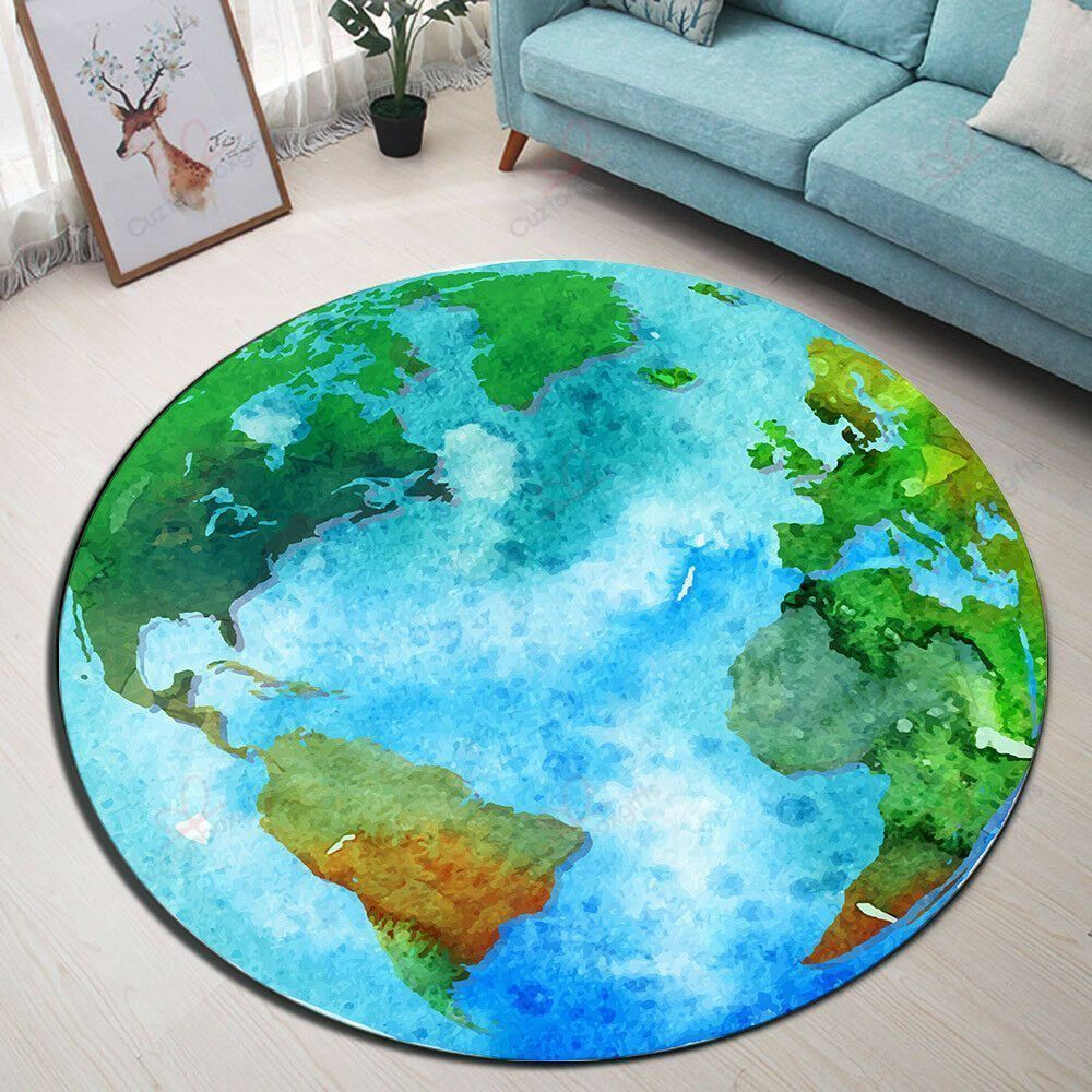 Green World Map Round Carpet Floor Rug Living Room Bedroom Decor Round Area Rug Carpet