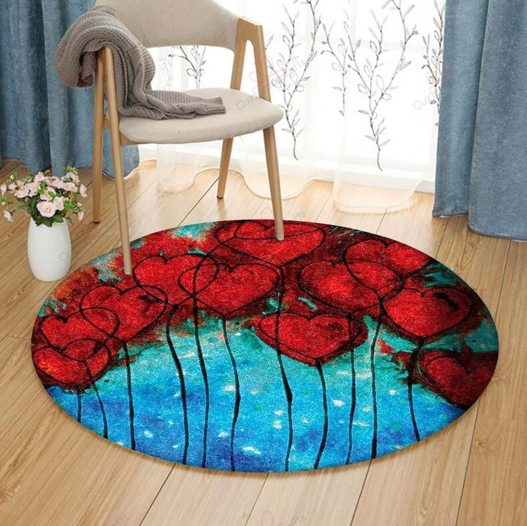 Hearts On Fire Round Carpet Floor Rug Living Room Bedroom Decor Round Area Rug Carpet
