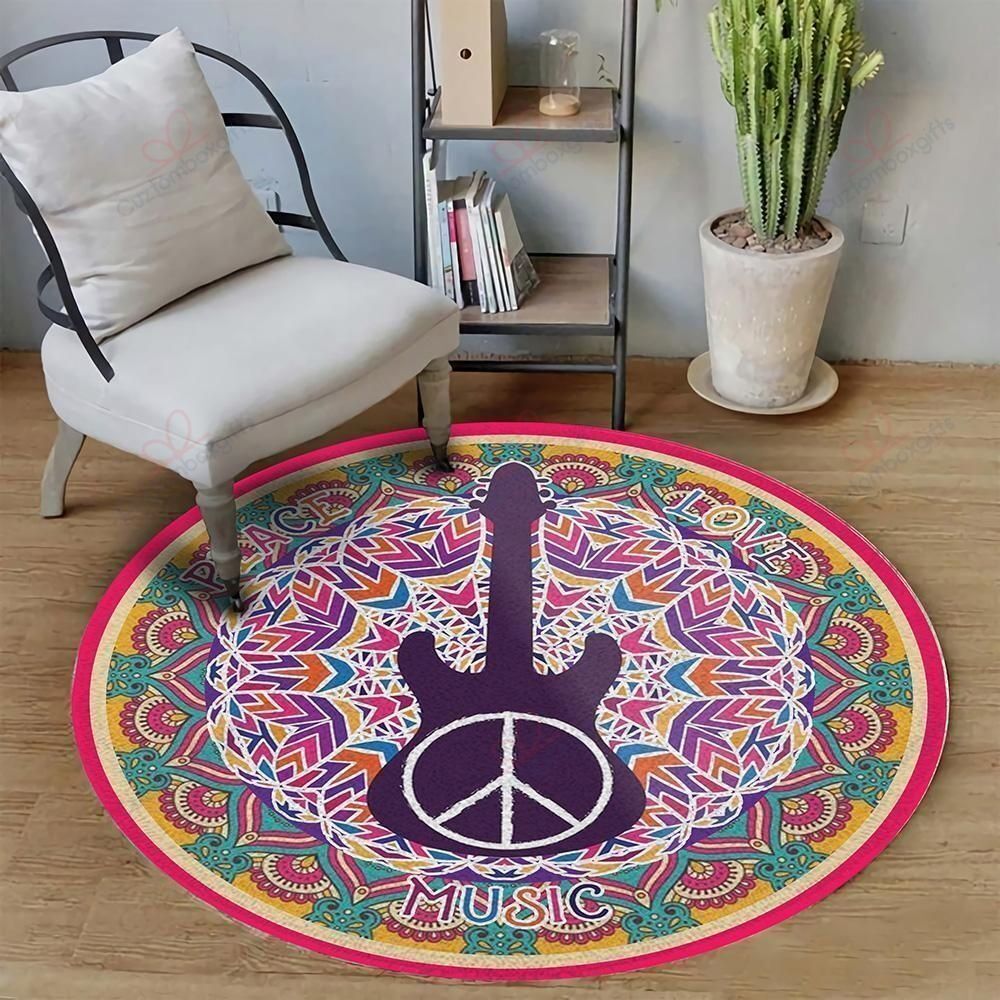 Hippie Guitar Round Carpet Floor Rug Living Room Bedroom Decor Round Area Rug Carpet