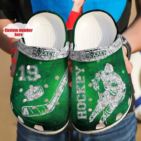 Hockey Diamond Green Personalize Clog Custom Crocs Clog Number On Sandal Fashion Style Comfortable For Women Men Kid