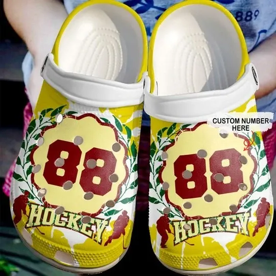 Hockey Passion Yellow Personalize Clog Custom Crocs Clog Number On Sandal Fashion Style Comfortable For Women Men Kid