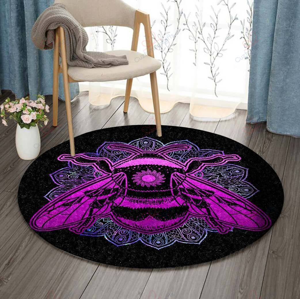 Mandala Bee Round Carpet Floor Rug Living Room Bedroom Decor Round Area Rug Carpet