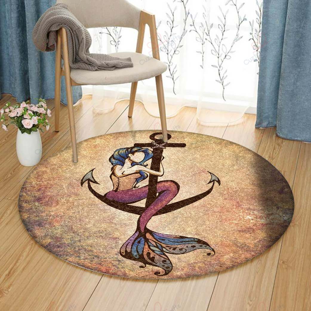 Mermaid Anchor Round Carpet Floor Rug Living Room Bedroom Decor Round Area Rug Carpet