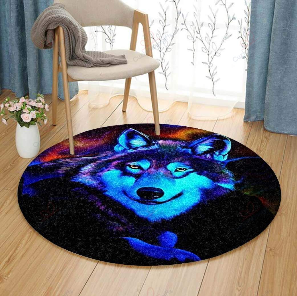 Neon Wolf Round Carpet Floor Rug Living Room Bedroom Decor Round Area Rug Carpet