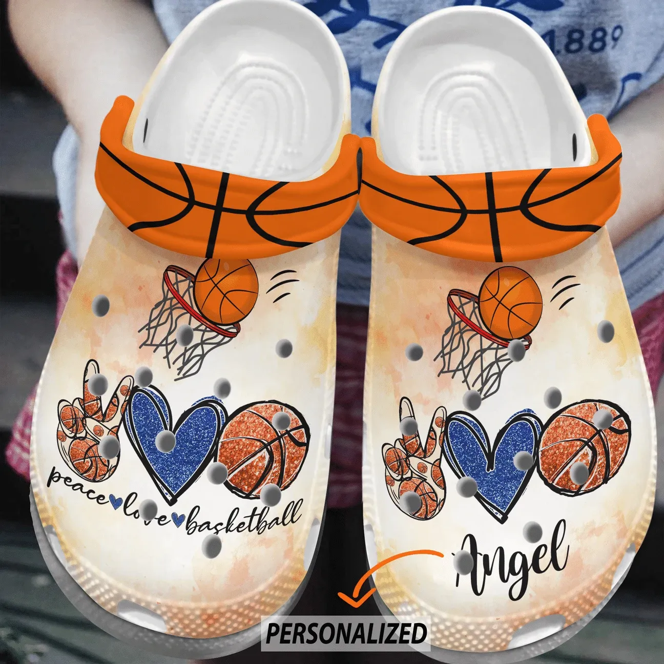 Peace Love Basketball Personalized Clog Custom Crocs Comfortablefashion Style Comfortable For Women Men Kid Print 3D