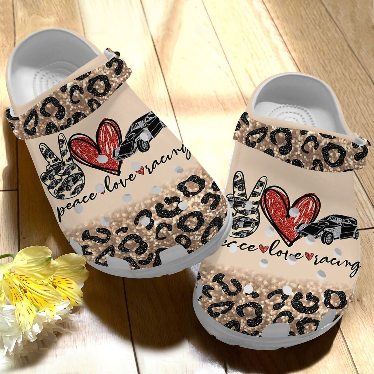 Personalized Crocs Clog Racing,Peace Love Racing, Fashion Style Print 3D For Women, Men, Kid