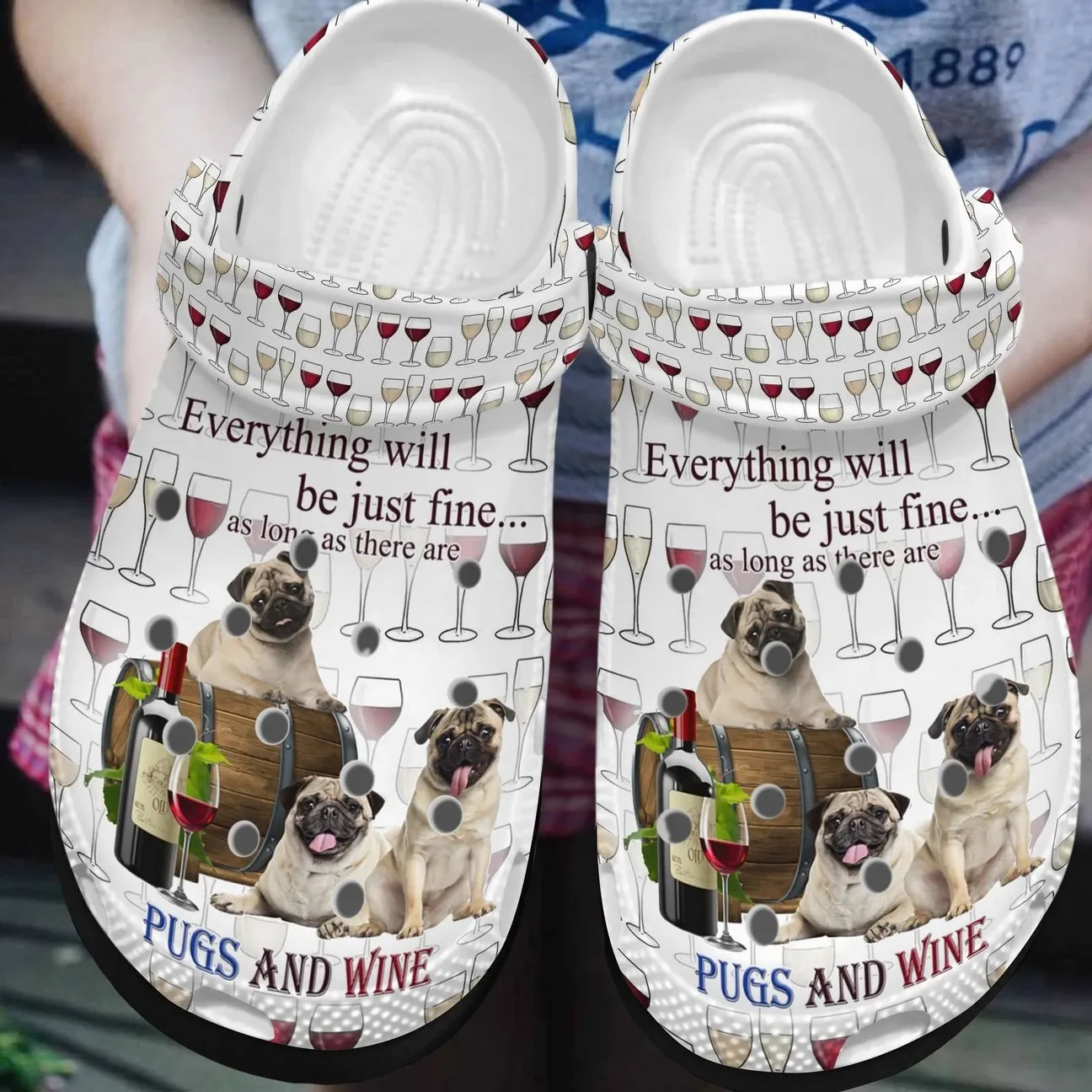 Pug Personalized Clog Custom Crocs Comfortablefashion Style Comfortable For Women Men Kid Print 3D Love Pugs And Wine