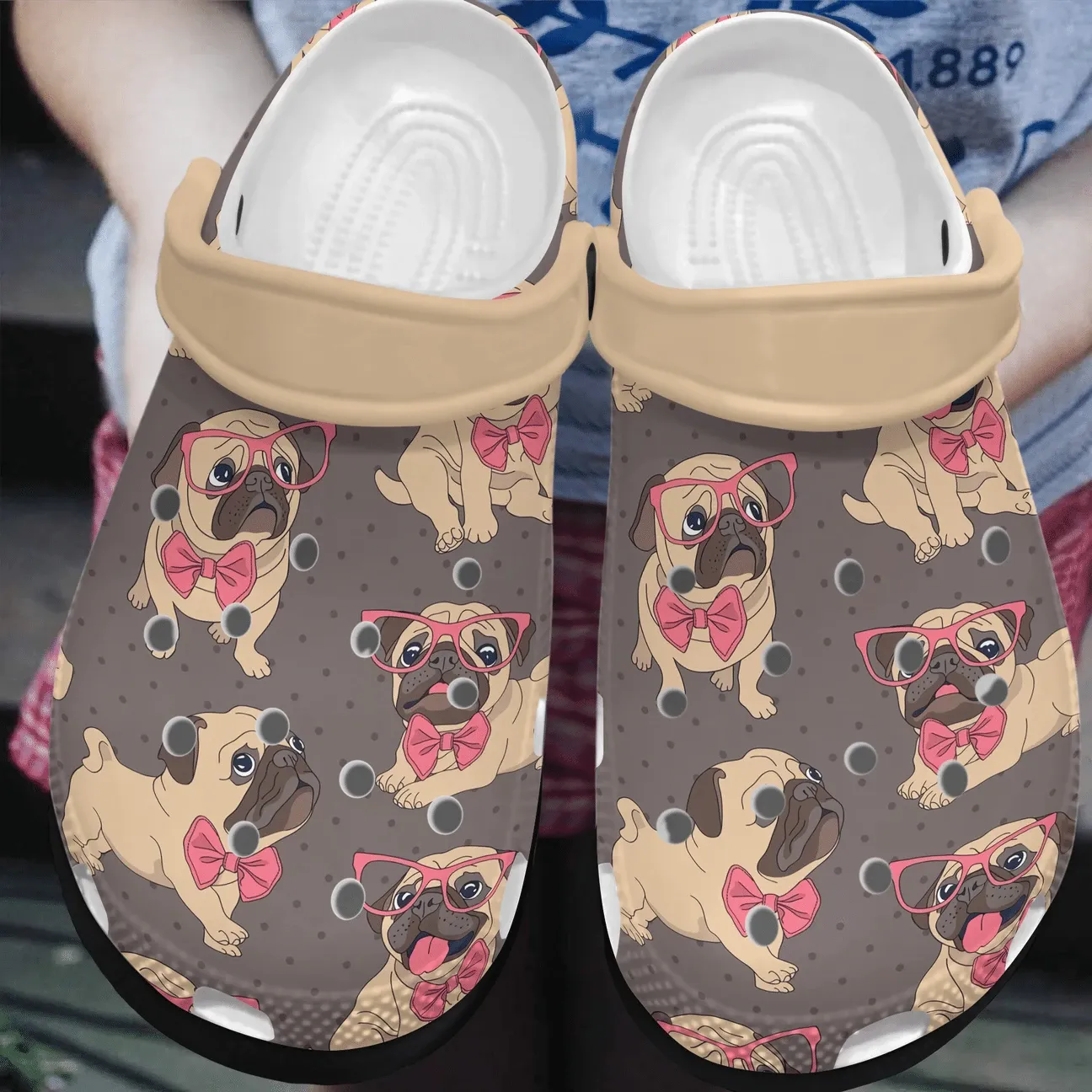 Pug Personalized Clog Custom Crocs Comfortablefashion Style Comfortable For Women Men Kid Print 3D Pink Glasses