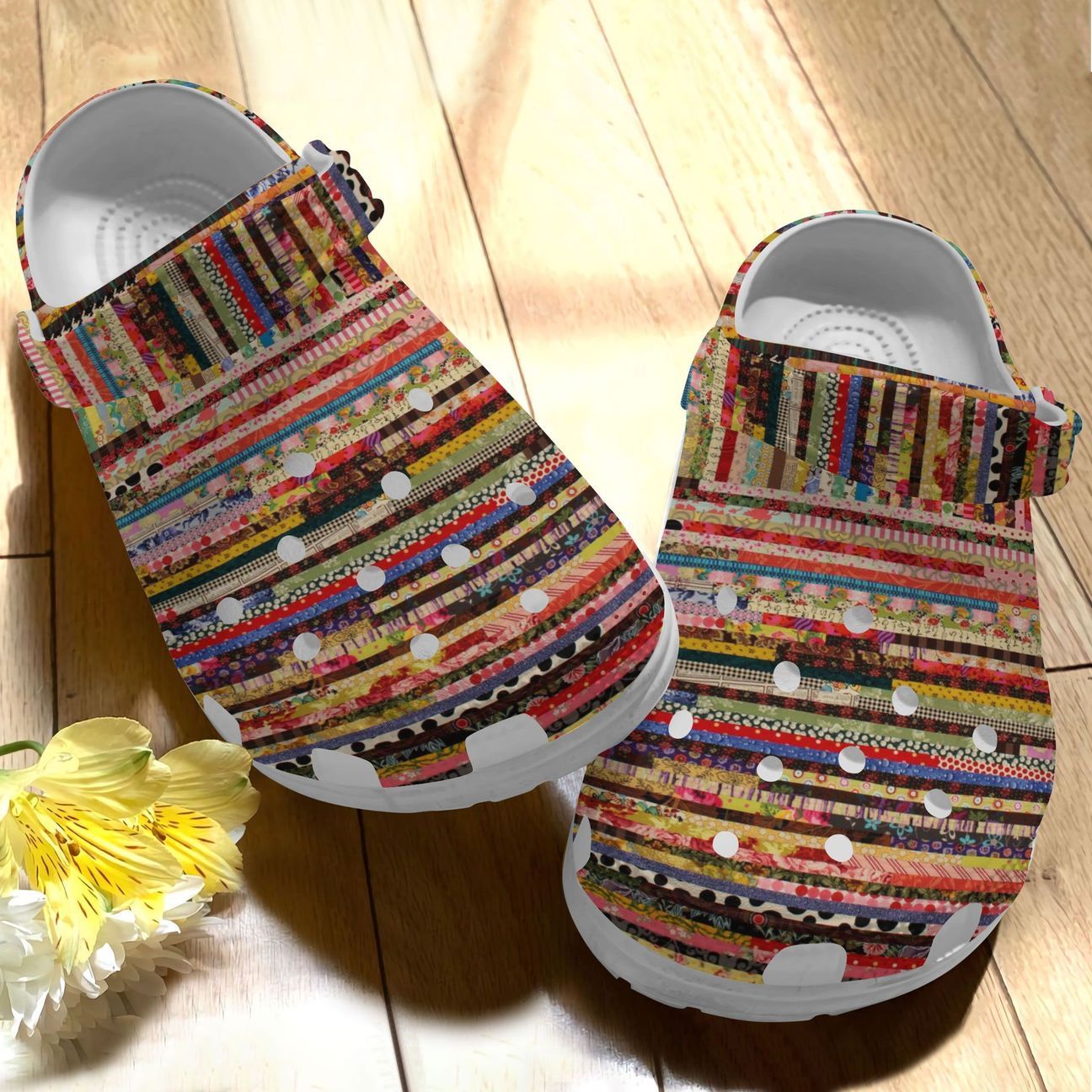 Quilt Personalize Clog Custom Crocs Fashionstyle Comfortable For Women Men Kid Print 3D Whitesole Colorful Fabric