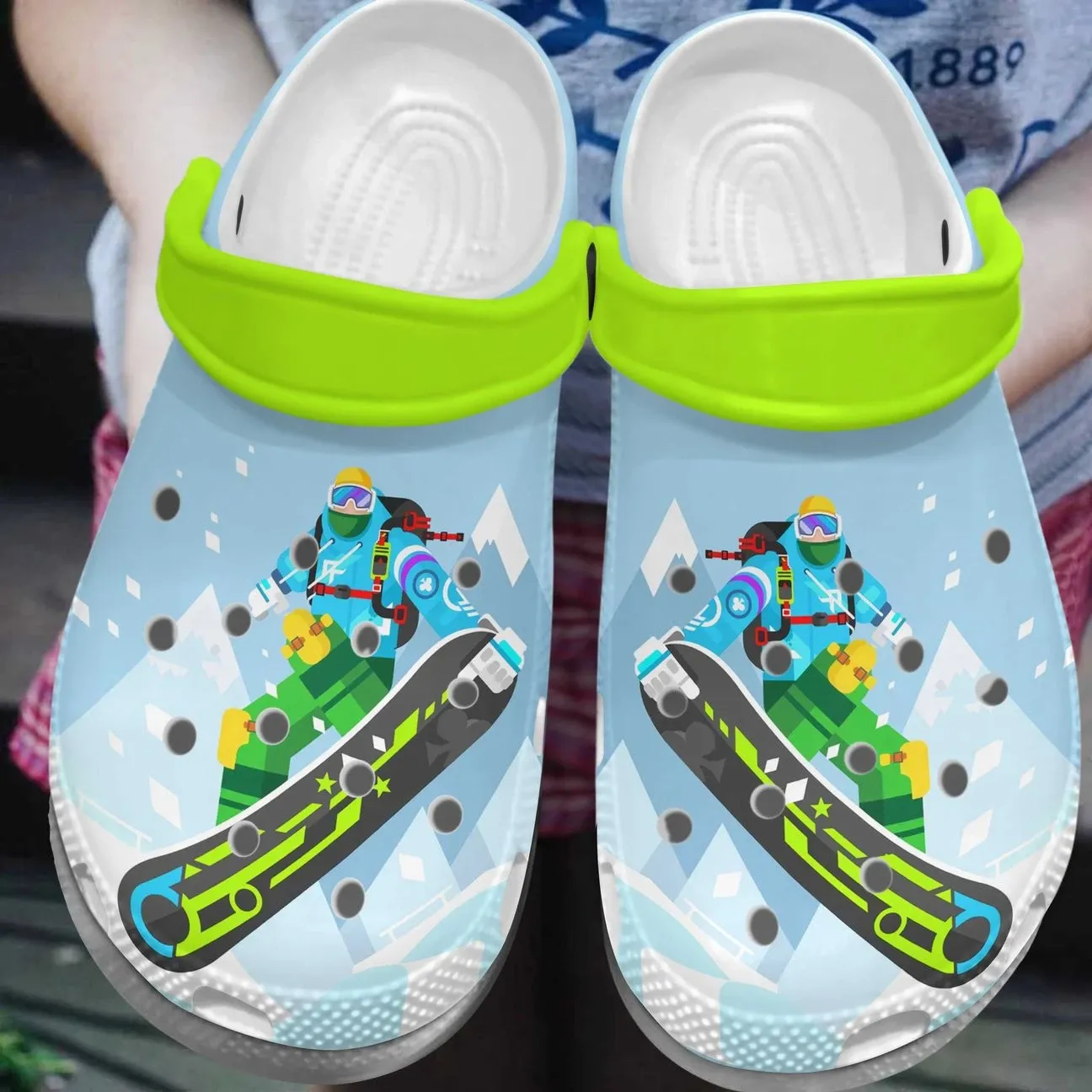 Skiing Personalized Clog Custom Crocs Comfortablefashion Style Comfortable For Women Men Kid Print 3D Green Skiing