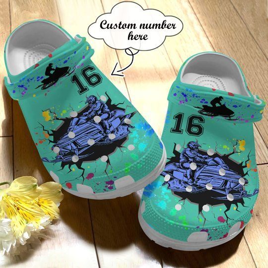 Snowmobile Cracking Aqua Personalize Clog Custom Crocs Clog Number On Sandal Fashion Style Comfortable For Women Men Kid