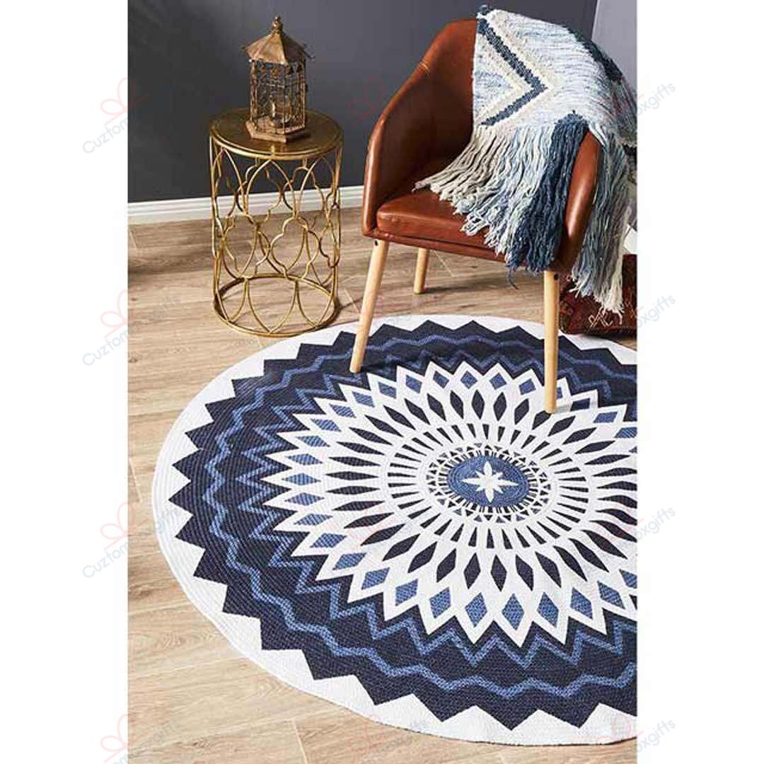 Sunburst Navy Round Carpet Floor Rug Living Room Bedroom Decor Round Area Rug Carpet